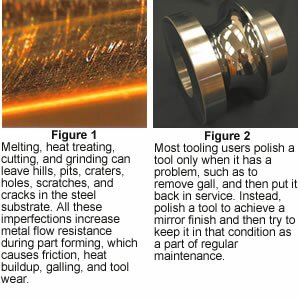 Most tooling users polish a tool only when it has a problem, such as to remove gall, and then put it back in service. Instead, polish a tool to achieve a mirror finish and then try to keep it in that condition as a part of regular maintenance (see Figure 2). Its not easy or fun, but it can be a real productivity enhancement.